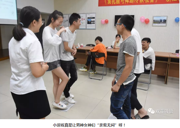 接下來,就是七(qī)夕暖場活動啦!所有的單身男女們(men)圍成(chéng)一個圈(quān),大家念道:“馬蘭花,馬(mǎ)蘭花,風(fēng)吹雨打都不怕(pà),請問(wèn)要開幾朵?” “4朵”,當吸管妞一聲(shēng)令下,大家隨機選擇了同(tóng)伴抱在一起!最後留下(xià)的兩位小夥伴們還(hái)獲得了禮品哦!通(tōng)過小小的暖場(chǎng)活動,打開了大家拘謹的心扉,促進了彼此間的交流互動,是不是很棒呢!