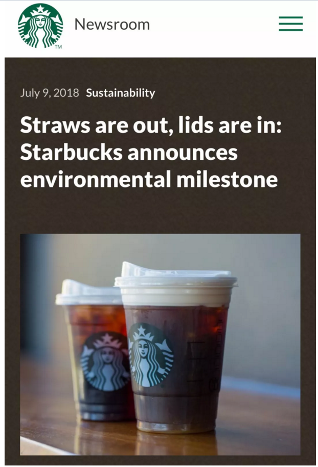 星巴克宣布禁用塑(sù)料吸管!