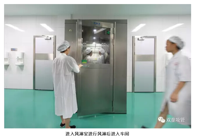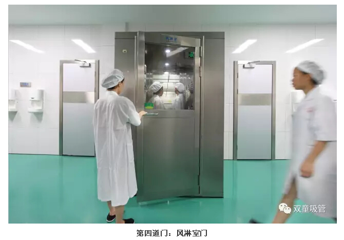 5、完成洗手消毒之後,要進入風淋(lín)室進(jìn)行風淋除(chú)塵。