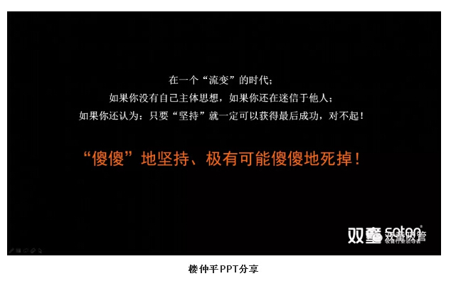 在本章節的(de)最後,樓仲平更是警(jǐng)醒(xǐng)所有聽(tīng)眾:在這(zhè)個“流變”的時代,如果你還(hái)認為隻要“堅持”就一定可以獲得成功,那就極有可能是“傻(shǎ)傻”地(dì)堅持,傻傻地(dì)死掉!唯有與時代同步,融入互(hù)聯網思維的(de)“新工匠精神”,才能夠在這個“流變(biàn)”的時代下持續生存發展!