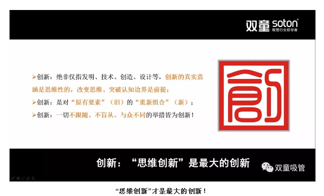 通過對吸管產品如何創新的思考,樓仲平闡明了創新的本質在(zài)於“思維創新(xīn)”,創新(xīn)就是運用新的思維,將原有要素進(jìn)行不斷“組合”,打破“固有”創造“未有”的過程。