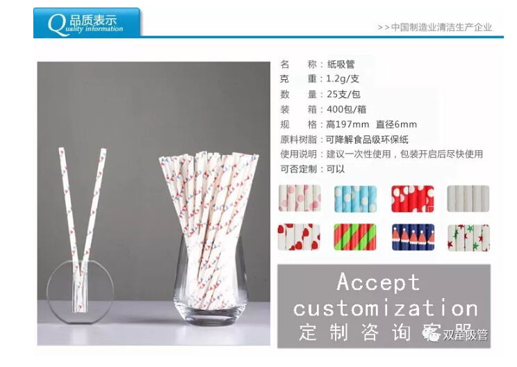 相對於塑料吸管(guǎn),紙質(zhì)吸管以食品接觸類原紙為主要材料,並能用大豆基油墨印刷各類(lèi)花色,在顏色鮮(xiān)豔飽滿的同時,確保安全無毒無異味,在回收廢棄後三到四個月內(nèi)可(kě)完全(quán)降解,符合歐美國家對食品安全包裝的(de)衛(wèi)生要(yào)求,可用於生日派對(duì)、餐飲連鎖、家庭消費、兒童DIY用具等各類場所!