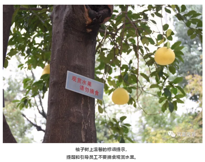 原(yuán)來,為了“.17c嫩嫩草色视频”的生態和美觀,公司明確柚子是觀賞性水果,每棵柚子樹上都有“觀賞水果,請勿(wù)摘食”的字樣,提醒和引導員工不要摘食觀賞水果。