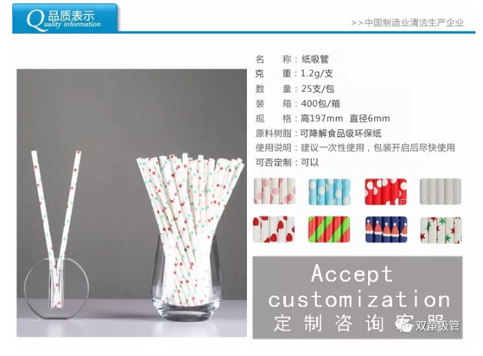相對於塑料吸管,紙質吸管以食品接觸類原紙為(wéi)主要材料,並能用大豆基(jī)油墨印刷各類花色,在(zài)顏色鮮豔飽滿的同時,確保安全無毒無異味,在回收廢(fèi)棄後三到四個月內可完全降解,符合歐美國家對食品安(ān)全包裝的衛生要求,可用於生日派對、餐飲連鎖、家庭消費、兒(ér)童DIY用具等各類場所!