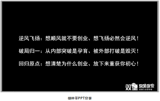首先,樓仲平(píng)以(yǐ)“2019,最近十年(nián)最難的一年,未來十年(nián)最好的一年”一句話展開分(fèn)享,並引導(dǎo)大家認知:改革(gé)開放四十年,好做的、能(néng)做的(de)、輕輕鬆鬆、容易做的都給我們(men)做完了。環境逆轉下、紅利消失下(xià),留下給我們的當然會越來越難做。所以,在這個時代(dài)下,做什麽並(bìng)不(bú)是(shì)那麽重要,重要的是(shì)要怎麽做。我們感受到一定是(shì):“逆風”中(zhōng)行進!