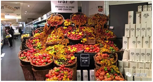 超市裏濫用(yòng)塑料包裝的現象十分嚴重↓