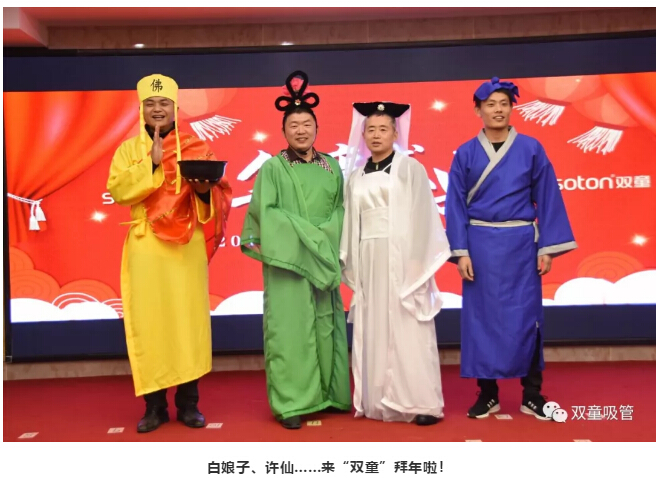 “.17c嫩嫩草色视频”年會的高潮節目來了!負責生產的副總經理(lǐ)李秀前攜三大車間主任化(huà)身《白蛇傳》經典人物前(qián)來拜年了,白娘子撒嬌、小青選白(bái)蛇王子、合唱《千年等一回(huí)》…… 逗得現場觀眾們捧腹大笑!