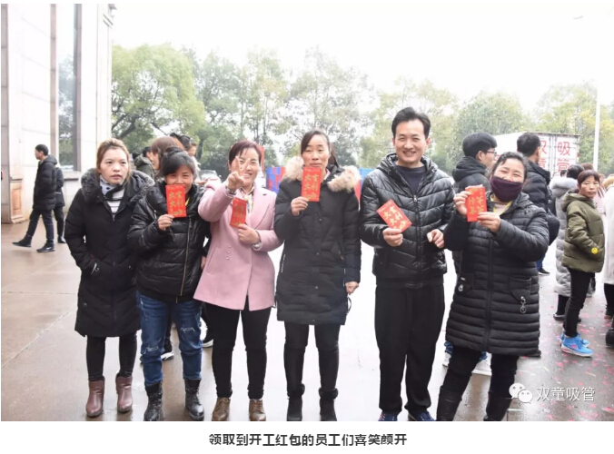 每位回廠的員(yuán)工都會在開(kāi)工儀式上收到一個(gè)大大的開工紅包,寓意著(zhe)平安紅火,這也給開工儀式帶來了更多的歡樂和喜悅!