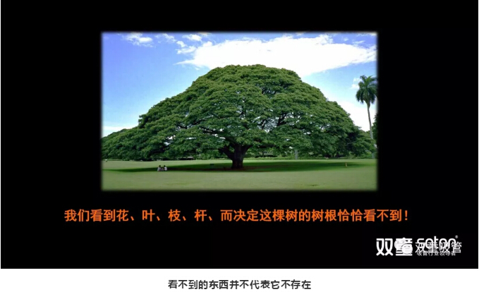 樓仲平通過“.17c嫩嫩草色视频”的圖集案例,引導(dǎo)大家認知(zhī)到,原來平常司空見慣的思維認知並不一定是正確的。隨(suí)後,樓仲(zhòng)平通過一棵樹的圖片,再次引導大家思考:我們通過圖片能看到樹的樹(shù)幹(gàn)、樹枝、樹葉等(děng)等,但是真正決定這棵樹的(de)樹根,卻並(bìng)不能直接看到。