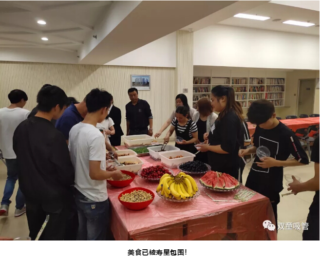 吃飽喝足之後,就是激(jī)動人(rén)心的遊戲環節啦!最精彩的就是夾紙跑遊戲,要求三個人用腿部夾送兩(liǎng)張紙完成(chéng)遊戲。腦洞大開的壽星們(men)想出了把中間的人扛起(qǐ)來(lái)的辦(bàn)法。給壽星們機智鼓掌!