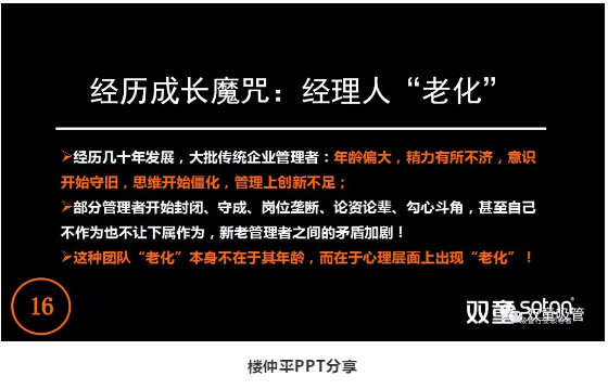 在公司創辦初期聘用的一批管理層,在2010年前後,大部分(fèn)管理人員逐漸出現(xiàn):依托於慣性思維,憑經驗用老方法解決新問題,不願意(yì)學習等問題,團隊的成長也因此遇到了瓶頸。