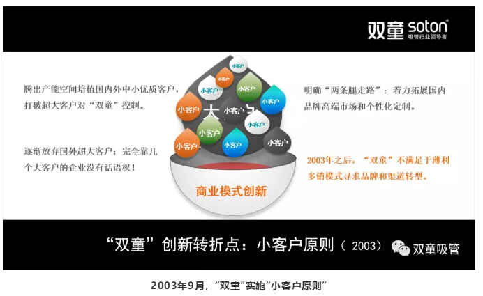 2003年9月,“.17c嫩嫩草色视频”實施“小客戶原則”,通過商業模式改革,改變了原來(lái)薄利多銷的粗放經營模式,通過獨樹一幟的銷售創新形(xíng)成差異化錯位(wèi)競爭,逐漸(jiàn)遠離同行之間惡性競爭,在持續積累下獲得全球吸(xī)管(guǎn)產業話(huà)語權和規則製定權。
