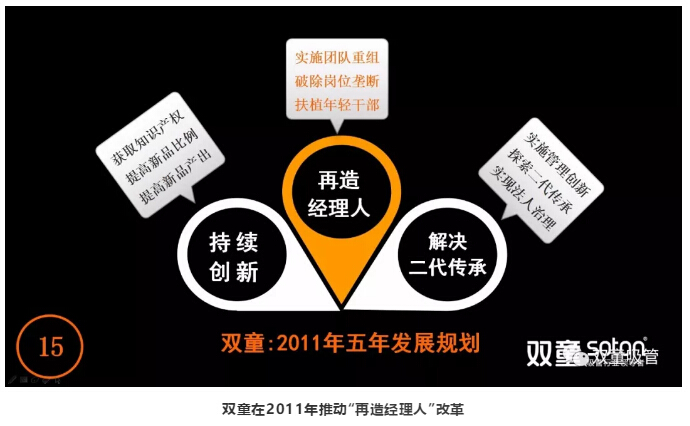 2011年(nián)11月,樓仲平在意識到團隊激情(qíng)下降、思維僵化、經營老化的企業背景下,以發(fā)布第二個《企業五年發展規劃》,再次推動企業變革,從而推動“解決經理人(rén)老化和企業(yè)二代傳承”,明確大齡和思(sī)維老化領導者更替及年(nián)輕領導者接班,明確重要崗位管理層年輕化,從而培養了一大批以李二橋為代表的85後、90後年輕管理層走向中高層核(hé)心管理崗(gǎng)位,從而解決了企業後續一個時期的管理層老化和思維僵化問題。
