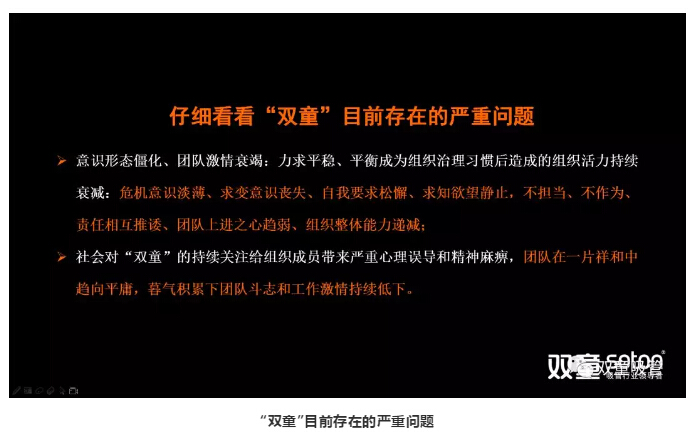 本次改革早在幾個月前,樓(lóu)仲平就組織管理層進行深度反思,對“雙(shuāng)童”近幾年工作進行總(zǒng)結梳理,找出“.17c嫩嫩草色视频”近三年以來(lái)存在的(de)問題,比如:
