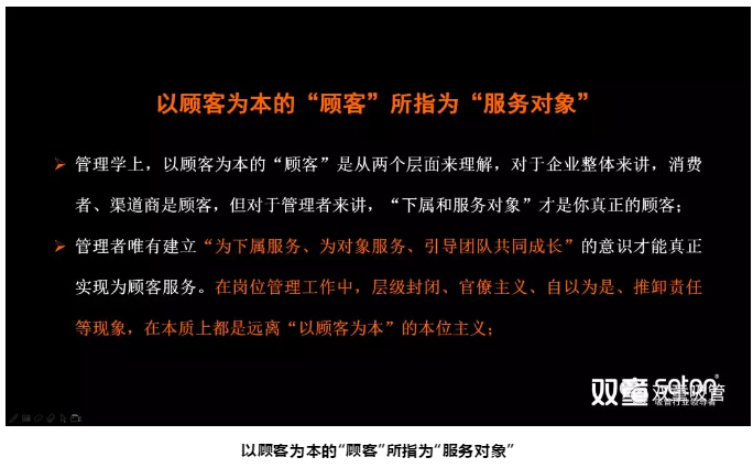 第二問題:對於管理者來講“以顧客(kè)為本”的顧客是一線員工。