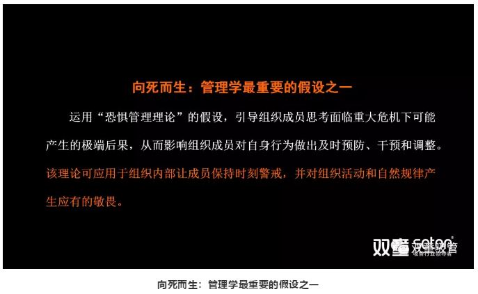 德國哲學家馬(mǎ)丁·海德格爾提(tí)出“向死而生”,引導(dǎo)人們正確認(rèn)知(zhī)“死”的概念來激發我(wǒ)們內在“生”的欲望,以此激發人們內在的生命活力。通過對“死(sǐ)”反(fǎn)悟,生命(組織或企業)是可以延長的,從而(ér)煥發出組織積極活力!