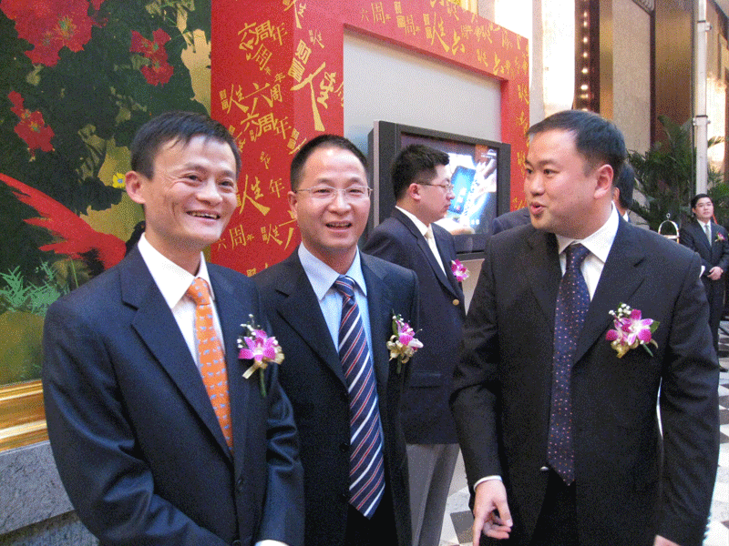 上圖為樓總和(hé)阿裏巴巴總裁馬雲(圖左)、英科控股總裁劉方毅(圖右(yòu))合(hé)影