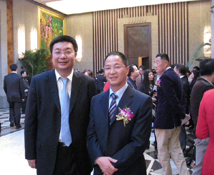 上(shàng)圖為(wéi)樓總和分(fèn)眾傳(chuán)媒總裁江南春(圖左)合影