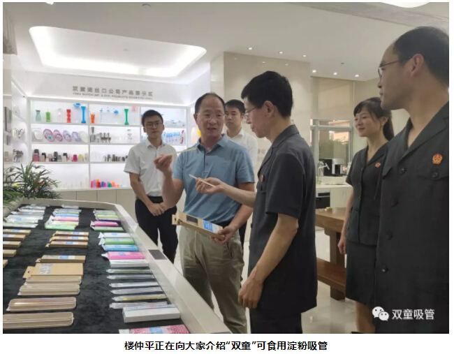 胡公益院(yuàn)長聽完介紹後,對這款綠色環保的可(kě)食用(yòng)澱粉吸管稱讚連連。