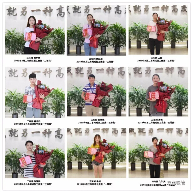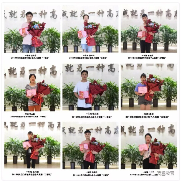 2019年8月(yuè)紙吸管車間小組個人競(jìng)賽一等獎:王方方、二等獎:張玲玲、三等獎:潘玉良