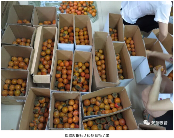 采摘下來的柿子將枝椏剪掉,再塗抹上一點藥酒,再一顆(kē)顆裝進箱子,層層(céng)碼起來,靜靜等待時間施展魔法……