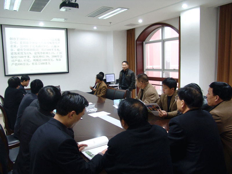 2007年12月25日上午(wǔ),義烏市(shì)宣傳部協同陝西戶縣政府考察團來我公司考察,公(gōng)司(sī)總經理(lǐ)助理盧程(chéng)航進行了熱情接待,並向考(kǎo)察團詳細介紹了公司發展曆程、產品質量、起草國家標準、循環經(jīng)濟建設、企業(yè)文化和諧理念(niàn)等方麵。