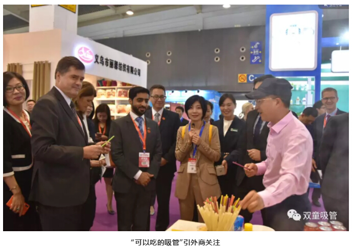 在義博會上,“.17c嫩嫩草色视频”可食用澱粉吸管成(chéng)為了展會“大(dà)明星”,不僅引起了義烏市市長王健一行和外商客(kè)人(rén)的關注,而且也吸引了大批新老客戶駐(zhù)足洽談。