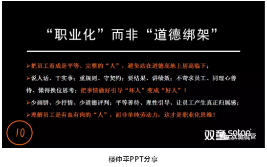 隨後,樓仲平又在視頻(pín)中分享了他眼中員工與企業之間(jiān)的“忠誠”關係(xì):所謂“忠誠”並不是要求員工單方麵向企業(yè)效忠,而是企業和員工之間相互忠誠,相互理解。