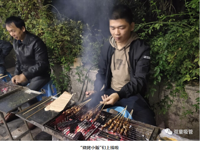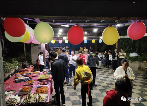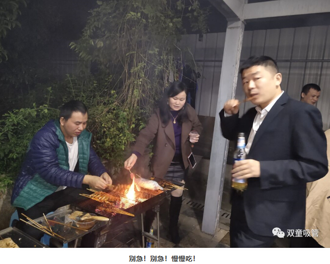 大家圍坐在烤爐前爭當“燒烤小販”,為壽星們進行服務。大夥手(shǒu)上的肉串還沒吃完,“燒烤小販”們已經笑眯(mī)眯地把新(xīn)烤好的肉(ròu)串奉上(shàng)了,吃都來不及,這是什麽(me)節奏!