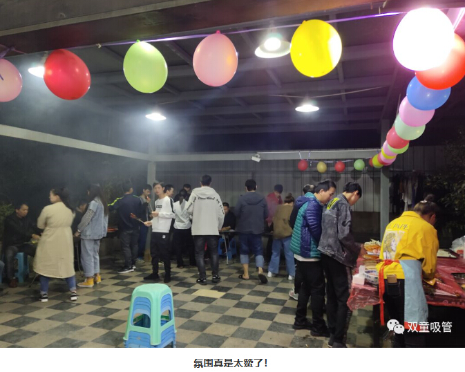 在製作和分享美味的過程中,工作壓力得(dé)到了釋放,同事間的(de)感情得到了加深,真是幸福感爆棚!生日會辦成了自助燒烤、篝火酒會,推杯換盞,大聲調笑,天氣雖然變冷(lěng),氣氛卻 so hot!