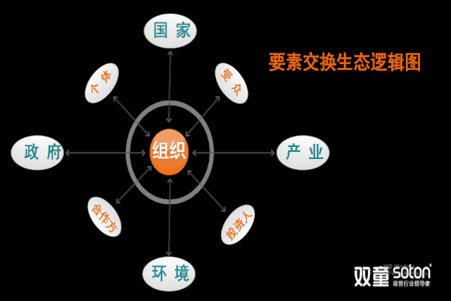 講到這裏,樓仲平為了讓現場(chǎng)觀眾更好地理解,便展示了一副要素交換生態邏輯圖,清晰地向大家說明:組織在發展過程中,與環境、產業、政府、國家等宏觀社會產(chǎn)生(shēng)了鏈接,這種鏈(liàn)接實際上是各種(zhǒng)要素(sù)的(de)相互交換和賦予。在合情、合(hé)理、合法、合乎道義的交換過程中,本(běn)質上雙方出(chū)於“利己”的目的,但同時(shí)又給對方創造了價值,讓雙方都有所獲得(dé),從而最終實現了(le)“利他”。