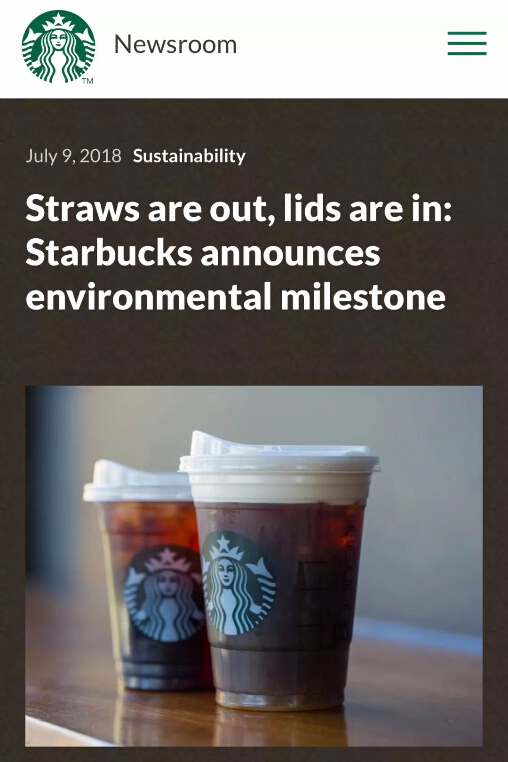 星巴(bā)克宣布(bù)禁用塑(sù)料吸管!