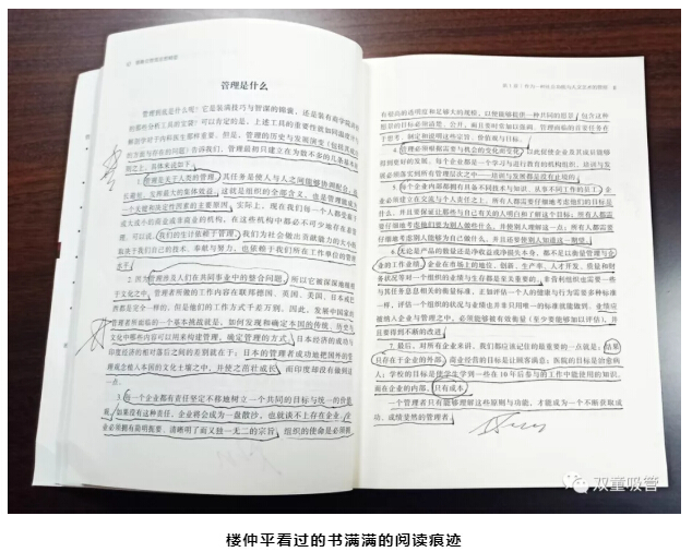 其實,樓仲平早在(zài)很多年前,就已(yǐ)經開始閱(yuè)讀現代管理學之父德魯克(kè)的書(shū)籍,他的書架上擺滿(mǎn)了德魯克的管理學著作。這些書籍經(jīng)過他反複閱讀,已(yǐ)經畫滿了圈圈點(diǎn)點的筆記。