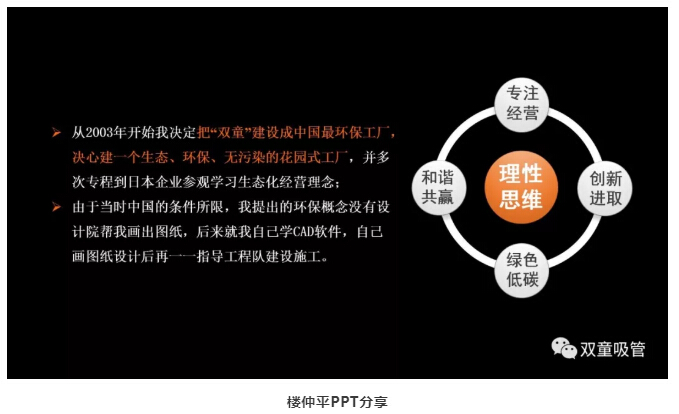 那麽,早在十多年前,整個社會環境都沒有倡導節能環保理念的當(dāng)時,樓仲平為何會選擇帶領企業走這條發展道路呢?下麵,吸管妞就借樓仲平在浙江大學授課時的一段視頻,揭秘(mì)其(qí)中的奧秘!
