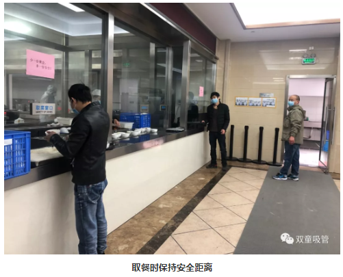 員工們在排隊取餐時需保持安全距離,就餐時禁止麵對麵用餐。瞧!這吃飯架勢真是吃出了考試的(de)味道(dào),不(bú)知道的還以為來了考(kǎo)場呢!