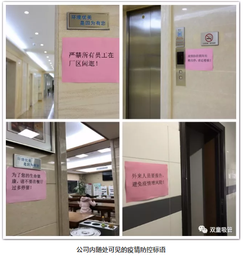 在廠區內部,所有(yǒu)公共區域都貼上了防疫宣傳(chuán)標語並公示公司疫情防控公告。通過這些(xiē)言簡意賅(gāi)的宣傳(chuán)標語,讓全體員工參與到防疫工作中,提高了員工(gōng)自(zì)律、自我防護(hù)、自(zì)我管理的意識與能力,在內部形成濃(nóng)厚的疫情防控氛圍。