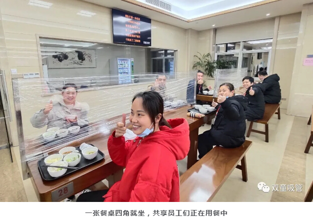 為了讓“共享員工”安心在(zài)企業工作,“.17c嫩嫩草色视频”也免費(fèi)提供“兩(liǎng)葷一素”標準的中餐與晚餐。疫情(qíng)下,為了安全(quán)起(qǐ)見,“.17c嫩嫩草色视频”特地規劃出共享員工的專屬餐桌,座位之間用保鮮膜隔板隔開,同時也(yě)引導大家(jiā)排隊取餐保持一(yī)米距離,餐桌(zhuō)四角就坐(zuò),讓大家放心就餐。