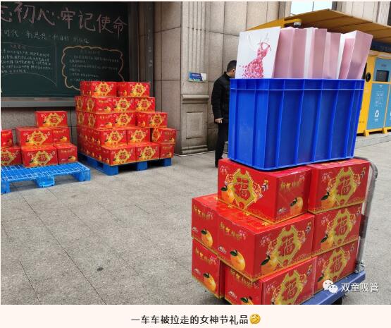 一箱箱椪(pèng)柑,一套套精(jīng)美小禮(lǐ)物,看的男同胞們都直呼想要(yào)呢。不過,這份專屬於女職工們的福利,快看我們各位女(nǚ)神(shén)抱著禮物開心的樣(yàng)子,別急別急,留一套給吸管妞哈!