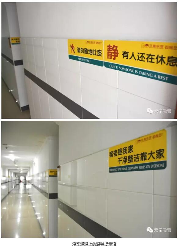 當你走在寢室通道上,你會發現牆麵上隨處可見的文化標語,有的都是善意的提(tí)醒和尊重的宣導……