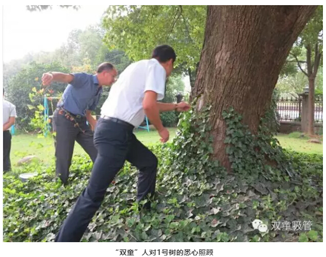 實際上,“雙(shuāng)童(tóng)1號樹”已經有200多(duō)歲了(le),整棵樹鬱鬱蔥蔥、枝繁葉茂,漂亮極了!