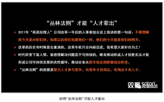 如今時代轉變(biàn)下,靠人情、感情(qíng)解決問題(tí)是不可持續的,唯有吸引人才參與競爭,推(tuī)動人才優(yōu)勝劣汰,才能形成公司可持續發展(zhǎn)的良性循環,推動企業從群羊效應到群狼效應轉變。所以,公司裏的每一個人,也應該作出轉變,破除慣性、轉換思維、提高效率,否則都將在激烈的人才競爭中被淘汰!