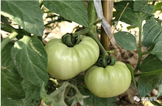 瞧,今年的番(fān)茄種植麵積比去年可增加了不(bú)少,一根藤上依舊(jiù)是碩果累累,結出好幾個番茄,大的,小的......看著這番茄的個頭,吸(xī)管妞吃一個都管夠了!