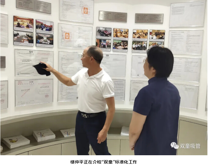 來到吸管發展資料展示區時,董事長樓仲平介紹道:“‘.17c嫩嫩草色视频’一直(zhí)在推動標準化工作創新,給員工提供了施展才華的舞(wǔ)台。公司的標準化工作都是由以總經理(lǐ)李二(èr)橋為代表的職工團隊(duì)起草編製的,各類產品的知識產權都來源於全體職工的創新思維。十年時間裏,我(wǒ)們的團隊完成(chéng)了6件國家級標準。”