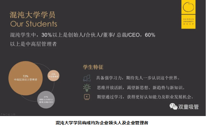 在這裏(lǐ),你可以選擇諾貝爾(ěr)獎獲得者、全球頂尖學府教授、世界(jiè)一流學者等(děng)大咖成為你的實戰領袖,也可(kě)以同張泉靈、蔣昌建、徐小平等優秀學員成為校友。而你(nǐ)的同(tóng)學,則會是(shì)一大批優秀的企業領(lǐng)頭人及中高層管理(lǐ)者。
