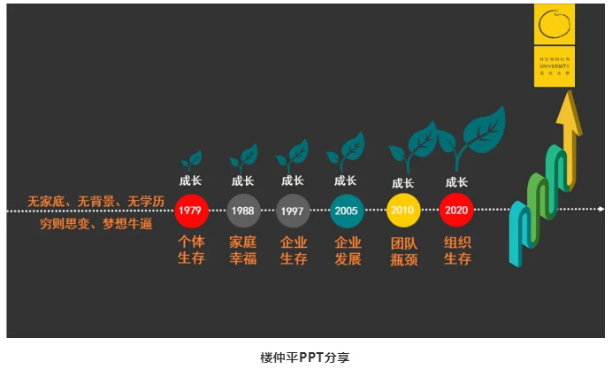課程一開場,樓仲平就分享了自己的成長曆程。在他的(de)成長曆(lì)程(chéng)中,有三個重要的時間節點: