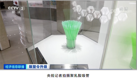 聚乳酸(suān)可降解(jiě)吸(xī)管(guǎn),是以玉米、甘蔗等作物為原料,經過一係(xì)列(liè)複雜工藝生產而成。畫麵中(zhōng)淺綠(lǜ)色的吸管就是其中之(zhī)一,據(jù)介紹,它放在這裏已經20多天,表麵已(yǐ)經開始漸(jiàn)漸分解。