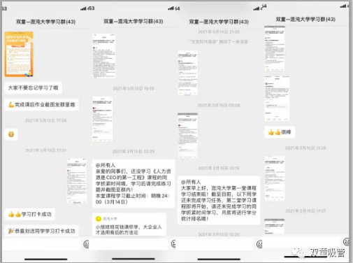 一開始,混沌大學義烏學習中心周上班主任首先向同學們公(gōng)示了本期的學習情況。作為團報企業,混沌(dùn)義烏會組(zǔ)建線上學(xué)習群,每月(yuè)會在群內發布學習任務(wù),督促同學們學習打卡(kǎ),並和企業學習領導小組負責人共同評選出優(yōu)秀(xiù)作業,並給予學(xué)分獎勵。