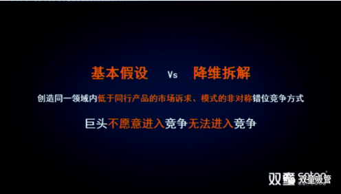 所謂“降維(wéi)拆解”並非降低產品的技術,更非粗製濫造,而是發掘(jué)底層消費群體更(gèng)為廣泛的大眾需求,從而實現市場占有的快(kuài)速提升,本質上就是錯位競爭,在看似(sì)一片紅海中尋找到自(zì)己的產業生態位。 實(shí)際上,錯位競爭的本質就是尋找到非對稱創造商業機會。而所謂錯位,是需要我們在經營上撇開大家都能(néng)看(kàn)到(dào)的機會,繞開我(wǒ)們習慣依(yī)賴的經驗主義,避開多數人在走(zǒu)的(de)尋常路,從而另辟(pì)蹊徑,去創造同一領域內高於同行產品的技術、需求、模式的非(fēi)對稱創新競爭方式。