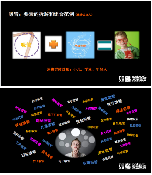 來源:樓仲平課(kè)件PPT 在打破了吸管隻能用來喝飲料(liào)的隱含假設(shè),運用要素拆(chāi)解和創新組合,從而獲得了十倍好。其(qí)背後是對產品(pǐn)認知的全新建構,形成了(le)全新的產品認知理念。