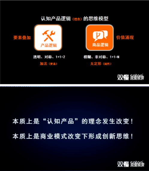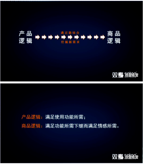 簡單(dān)來說(shuō),產品邏輯是要素的“疊加(jiā)之和”,是1+1=2,是成本疊加再加上合理利潤的預期值。所以,透明、對稱,你與競爭對手之間是(shì)完全的正麵競(jìng)爭。而(ér)商品邏輯是非對稱的,它隱含的(de)競爭要素(sù)更(gèng)多體現(xiàn)在人文性(xìng)和精神性上,如品牌、渠道、技術和體(tǐ)驗服務上,從而(ér)讓競爭(zhēng)對手(shǒu)無法複製,由此(cǐ)產生非(fēi)對稱競爭,以實現更大的價值創(chuàng)造(zào)。